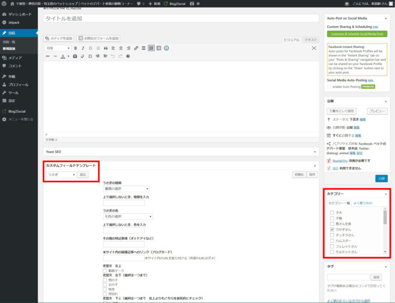 ハムスターの基本の記事設定はうさぎやチンチラ等と変わりません。カテゴリーとカスタムフィールドでハムス […]