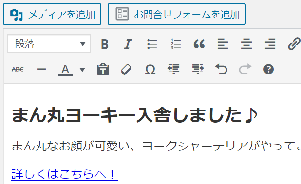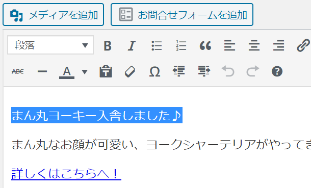 お知らせのトピックごとに上記を繰り返して、一つの記事の中にいくつものお知らせを作っていきます。