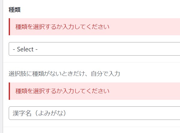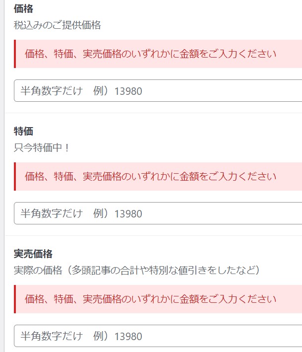 必須項目に入力もれがある場合、下記のような警告が出で、保存へと進みません。