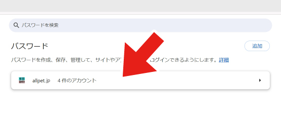パスワードマネージャーが開いたら、管理したいパスワードのドメインを選択します。