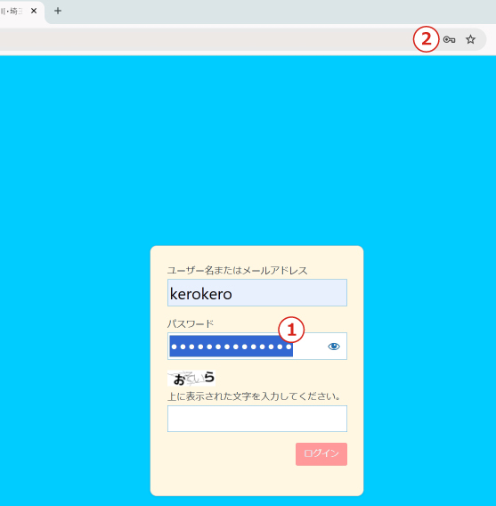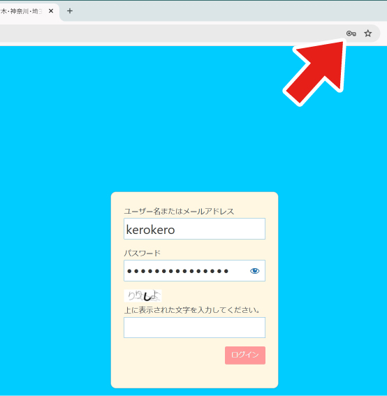 画面右上にカギのマークが現れるので、クリックしてパスワードの保存ウィンドウを出します。※ ここでクリックしなくとも、ログイン後に保存ウィンドウ表示されることもあります。