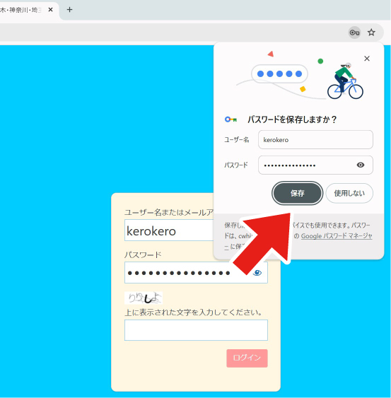② パスワードの保存ウィンドウが表示されたら、【保存】をクリックします。