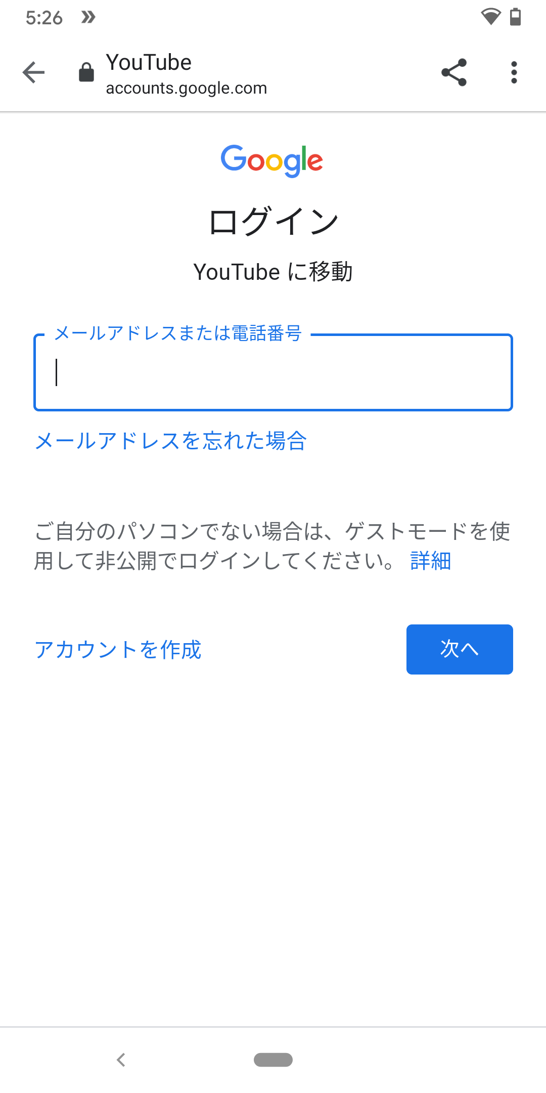 下のようなログイン画面が表示された場合は、動画アップの権利を付与されたGmailとパスワードを入力します