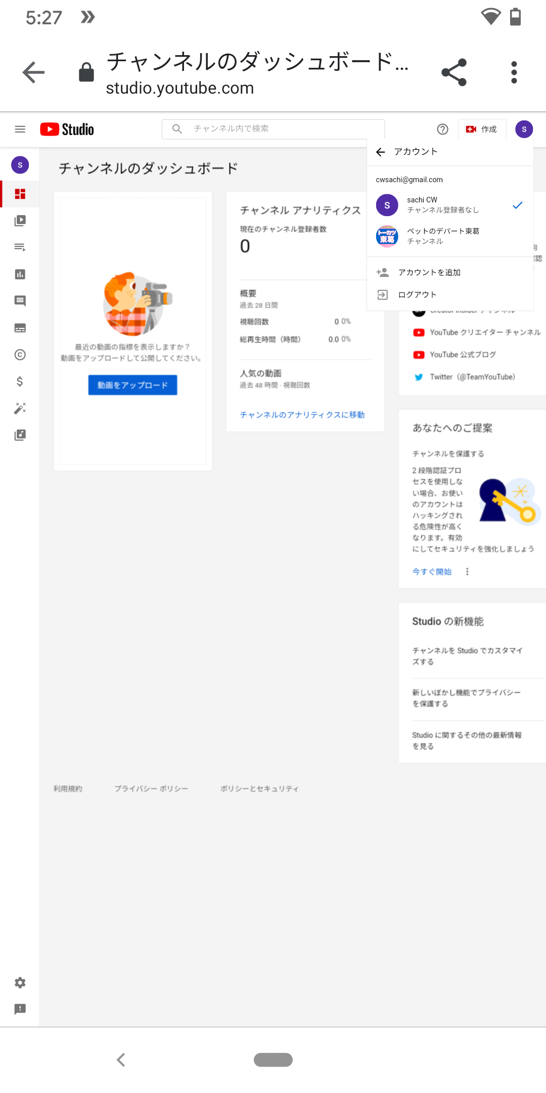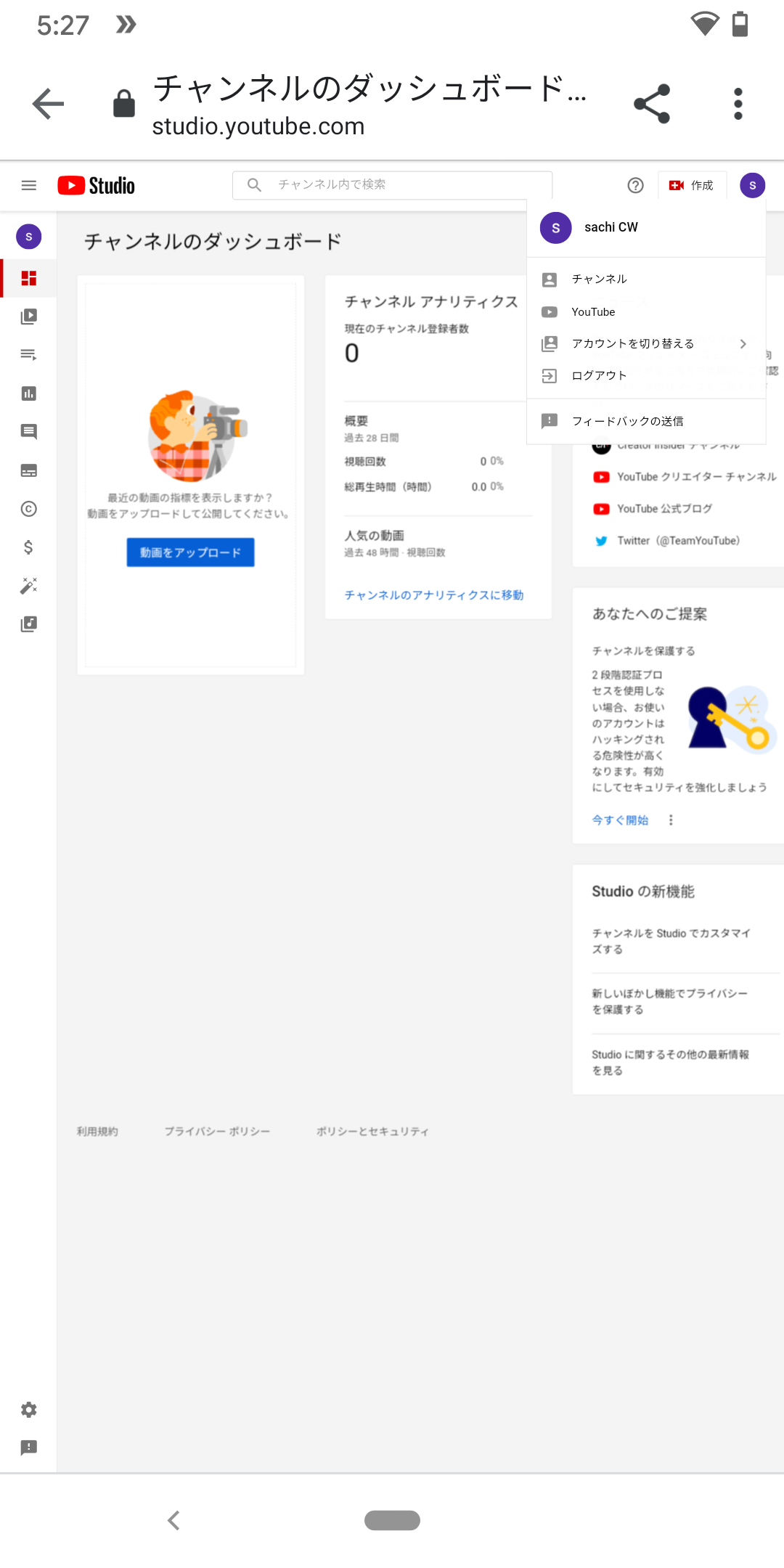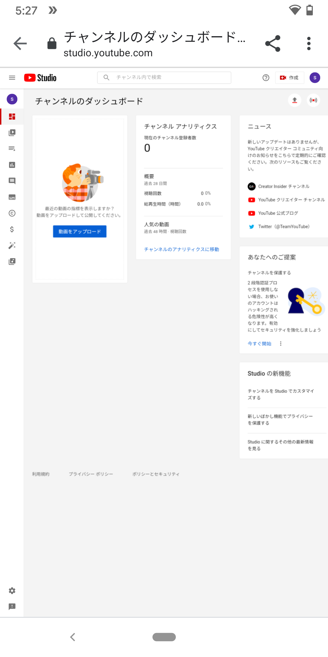 動画のアップには、ウェブ版の【Youtube Studio】を使用します。※アプリ版は使えません