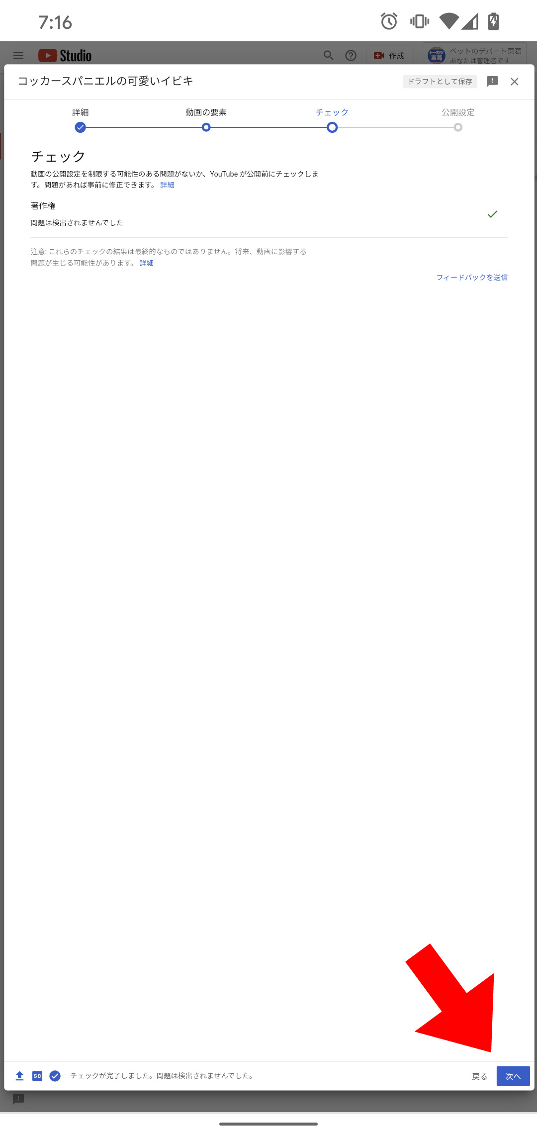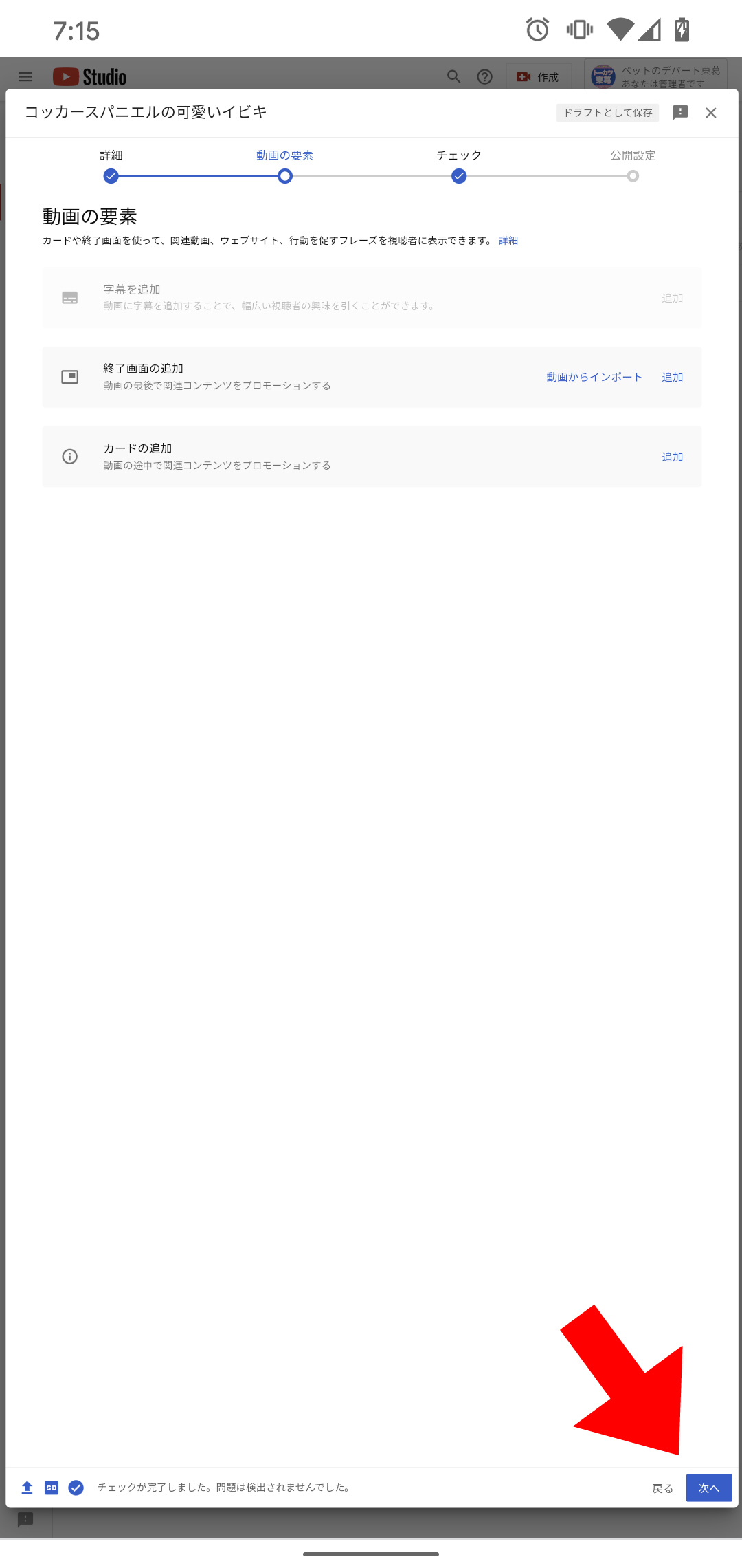 次の画面の【チェック】も特に操作することはありませんので、次へ進みます