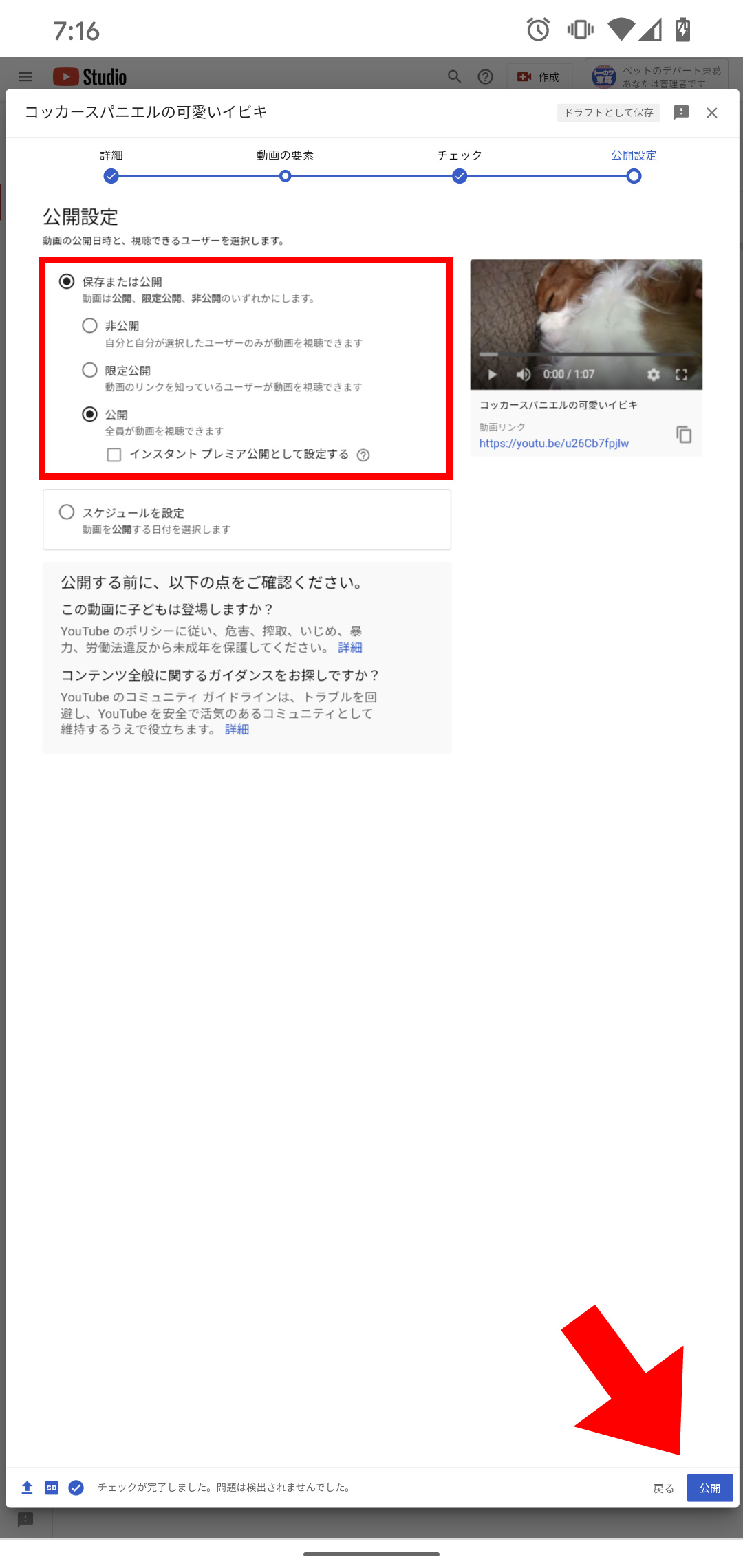 最後に画面下の【公開】をクリックしてフィニッシュです