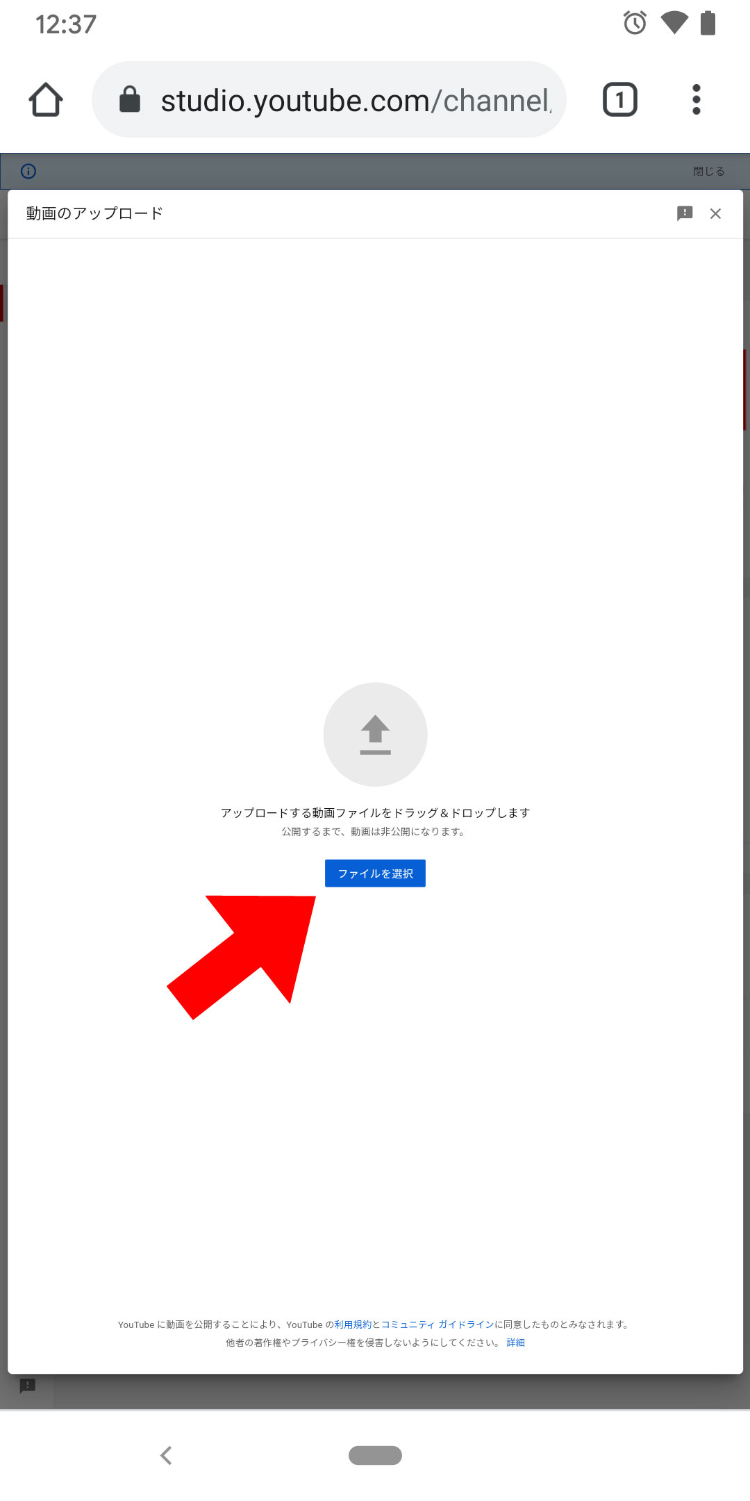 下の画面に切り替わったら、【ファイルを選択】をクリックします